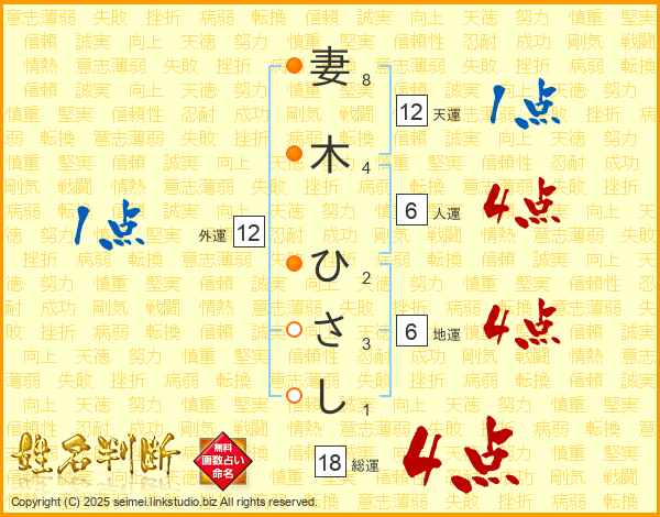 妻木ひさしさんの総運は18画の4点!