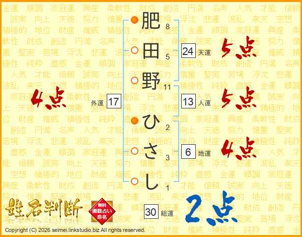 肥田野ひさしさんの総運は30画の2点!