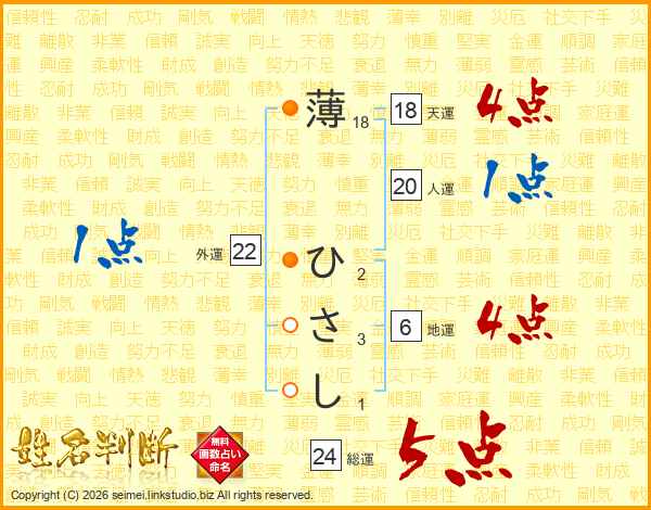 薄ひさしさんの総運は24画の5点!