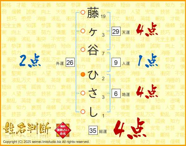 藤ヶ谷ひさしさんの総運は35画の4点!