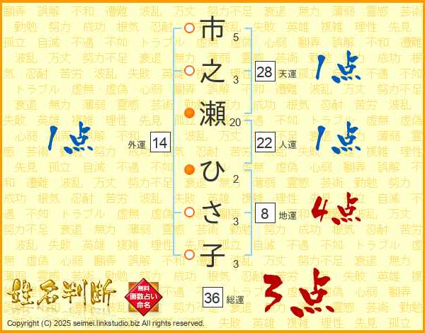 市之瀬ひさ子さんの総運は36画の3点!