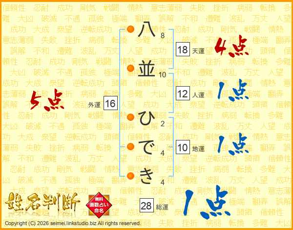 八並ひできさんの総運は28画の1点!