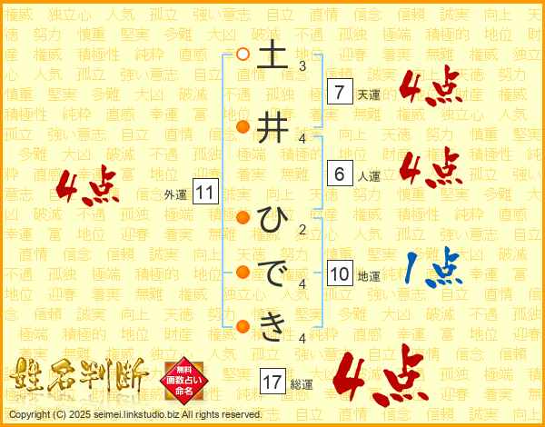 土(3画)井(4画) ひ(2画)で(4画)き(4画)