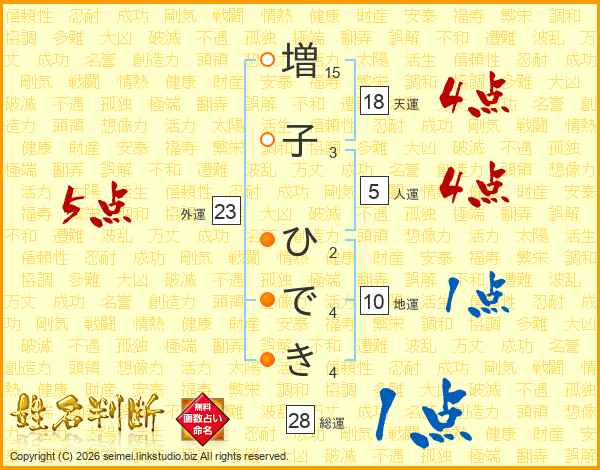 増子ひできさんの総運は28画の1点!
