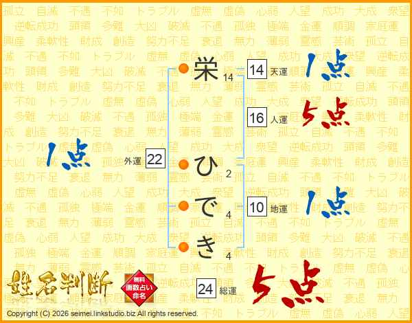 栄ひできさんの総運は24画の5点!