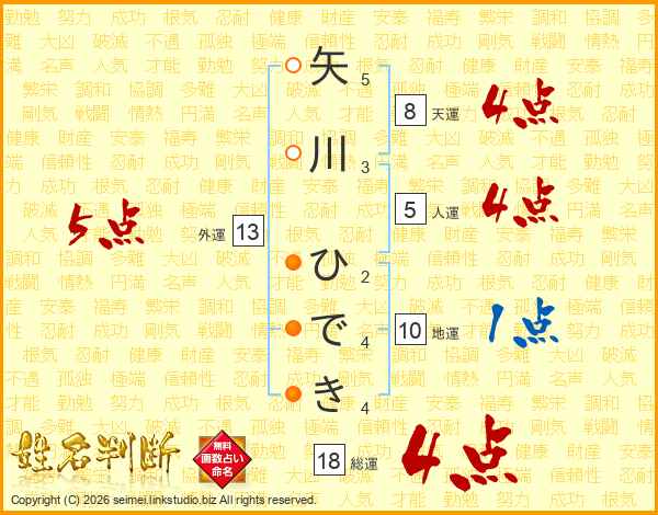 矢川ひできさんの総運は18画の4点!