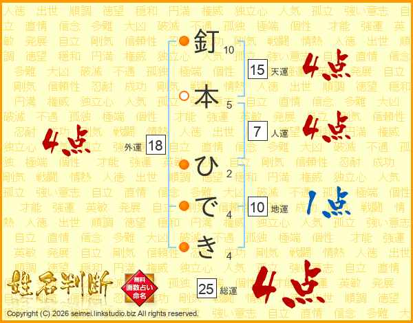 釘(10画)本(5画) ひ(2画)で(4画)き(4画)