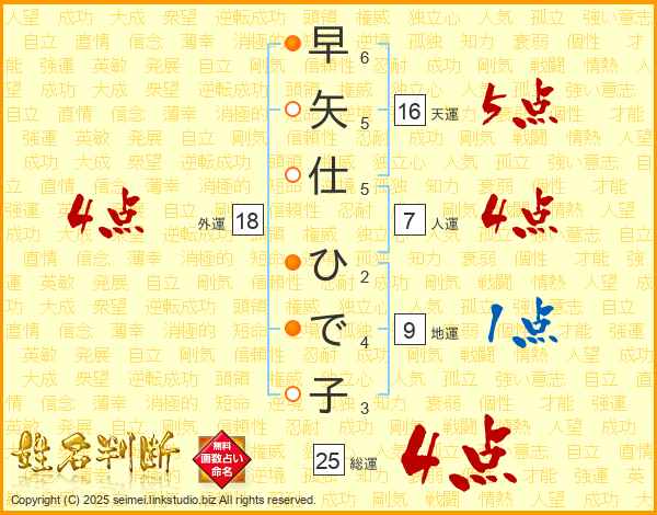 早(6画)矢(5画)仕(5画) ひ(2画)で(4画)子(3画)