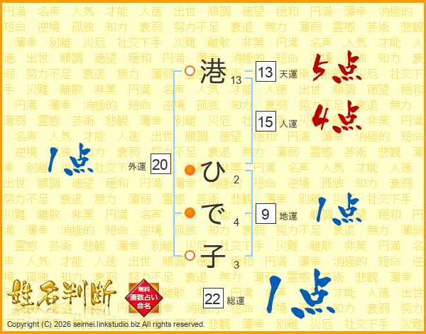 港ひで子さんの総運は22画の1点!