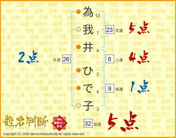 為我井ひで子さんの天運は23画の5点!