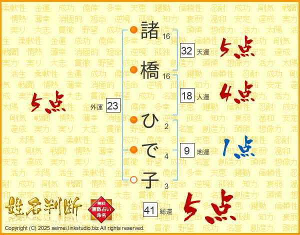 諸(16画)橋(16画) ひ(2画)で(4画)子(3画)