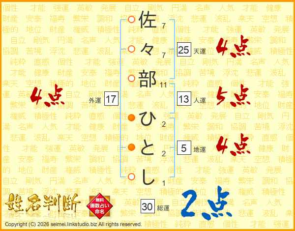 佐々部ひとしさんの人運は13画の5点!