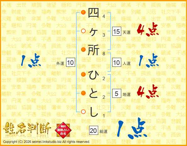 四ヶ所ひとしさんの総運は20画の1点!