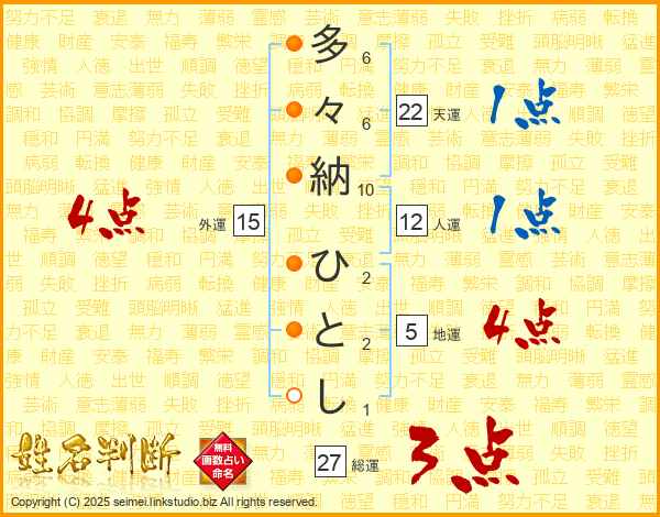 多々納ひとしさんの総運は27画の3点!