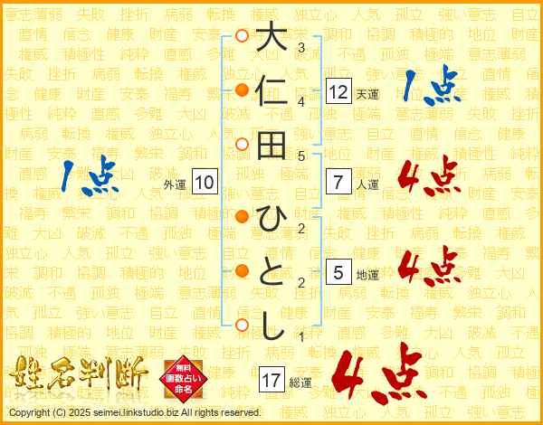 大(3画)仁(4画)田(5画) ひ(2画)と(2画)し(1画)