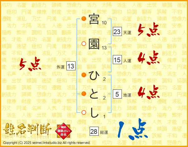 宮(10画)園(13画) ひ(2画)と(2画)し(1画)