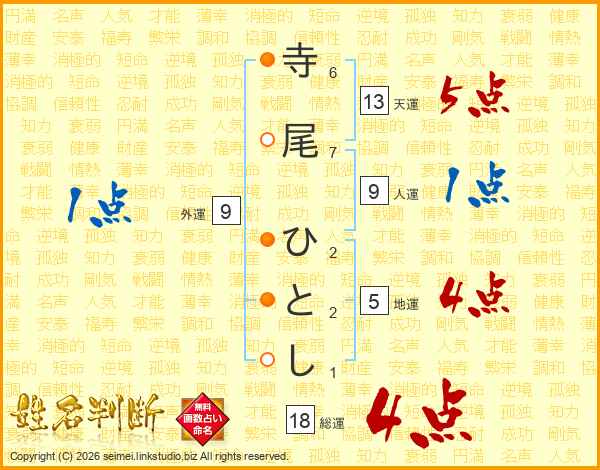 寺尾ひとしさんの総運は18画の4点!