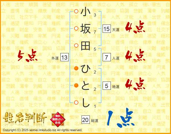 小坂田ひとしさんの総運は20画の1点!