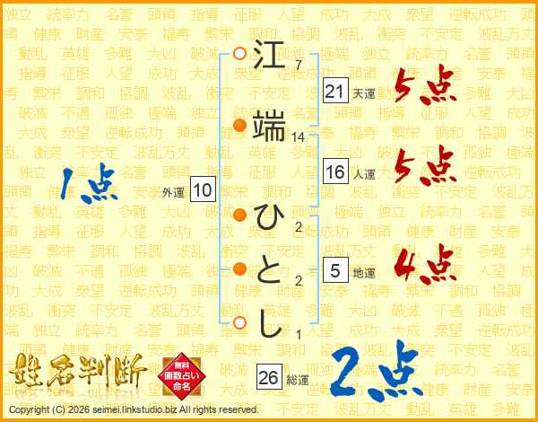 江端ひとしさんの総運は26画の2点!