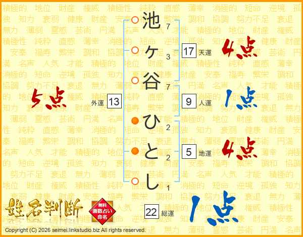 池ヶ谷ひとしさんの総運は22画の1点!