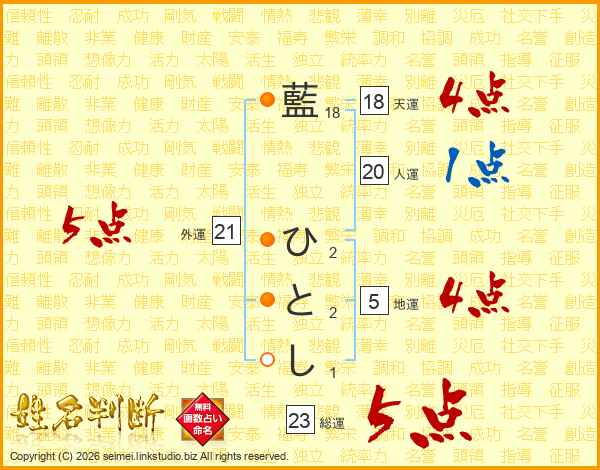 藍ひとしさんの総運は23画の5点!