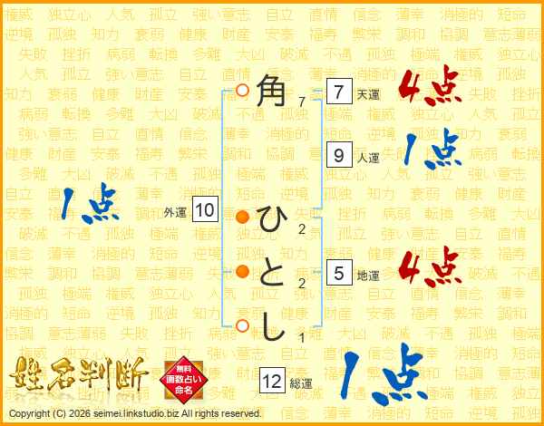 角ひとしさんの天運は7画の4点!