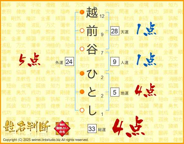 越前谷ひとしさんの外運は24画の5点!
