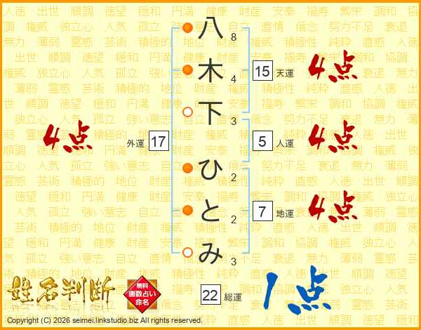 八木下ひとみさんの総運は22画の1点!