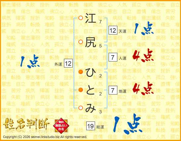 江尻ひとみさんの人運は7画の4点!