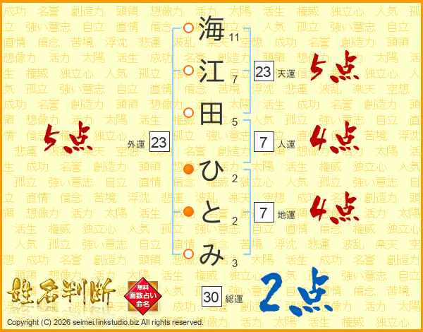 海江田ひとみさんの天運は23画の5点!