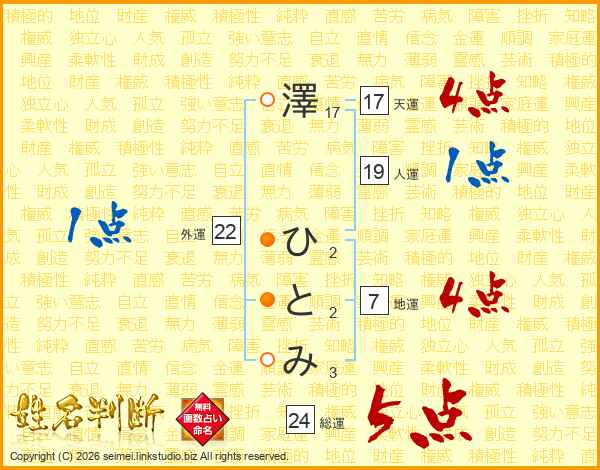 澤ひとみさんの総運は24画の5点!