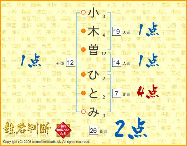小(3画)木(4画)曽(12画) ひ(2画)と(2画)み(3画)