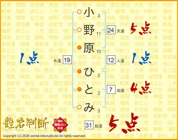 小野原ひとみさんの総運は31画の5点!