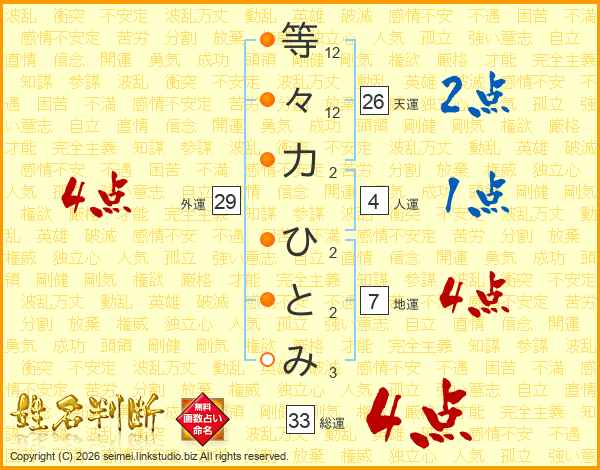 等々力ひとみさんの総運は33画の4点!