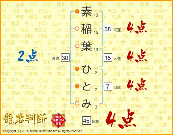素稲葉ひとみさんの総運は45画の4点!