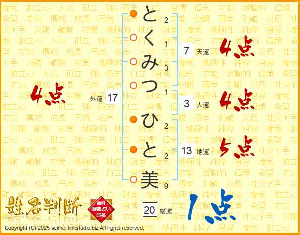 とくみつひと美さんの天運は7画の4点!