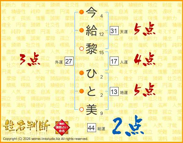 今給黎ひと美さんの総運は44画の2点!