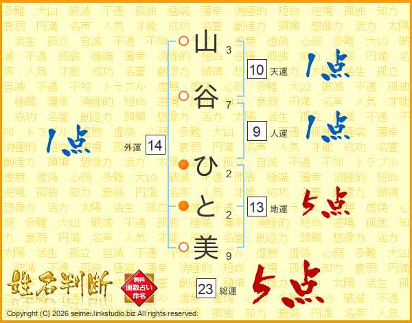 山谷ひと美さんの外運は14画の1点!