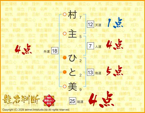 村主ひと美さんの総運は25画の4点!