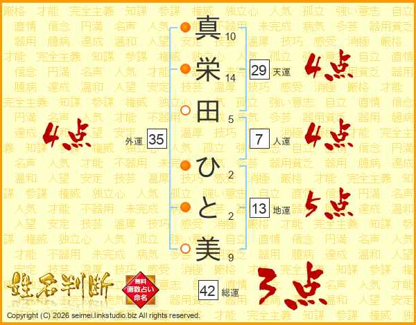 真(10画)栄(14画)田(5画) ひ(2画)と(2画)美(9画)