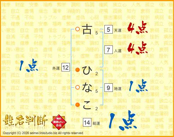 古ひなこさんの総運は14画の1点!