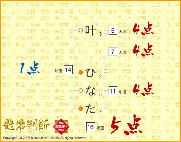 叶ひなたさんの総運は16画の5点!