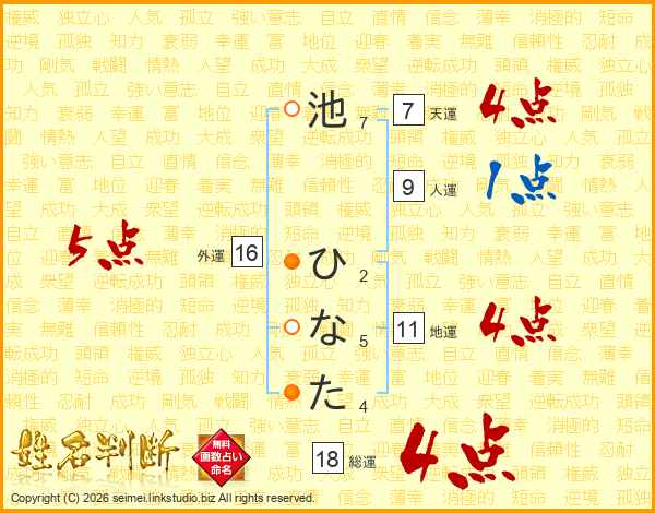 池ひなたさんの総運は18画の4点!