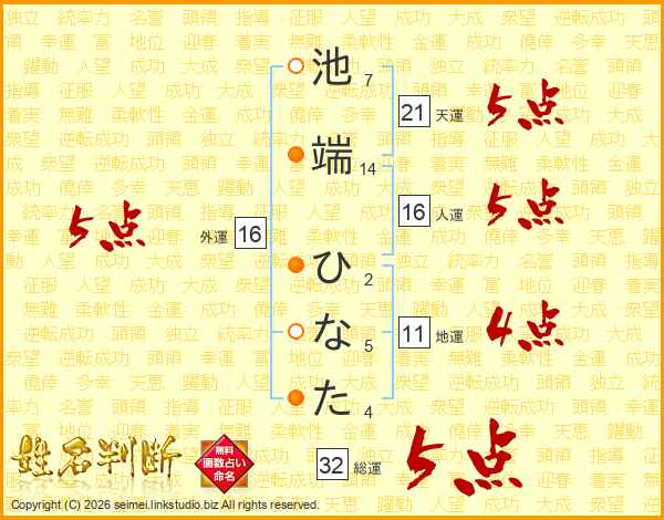 池端ひなたさんの総運は32画の5点!