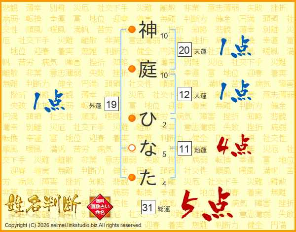 神庭ひなたさんの総運は31画の5点!