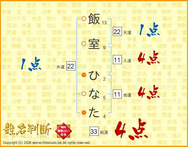 飯(13画)室(9画) ひ(2画)な(5画)た(4画)