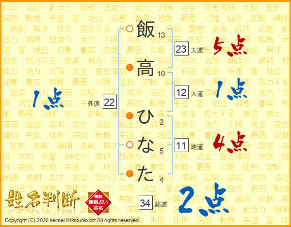 飯高ひなたさんの総運は34画の2点!