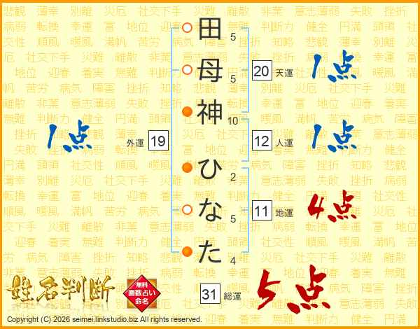 田母神ひなたさんの総運は31画の5点!