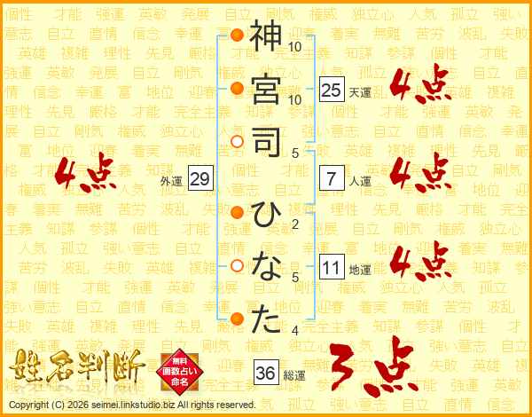 神宮司ひなたさんの外運は29画の4点!