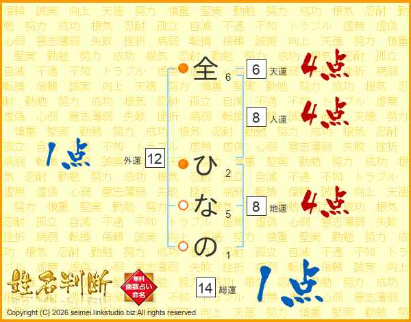 全ひなのさんの総運は14画の1点!